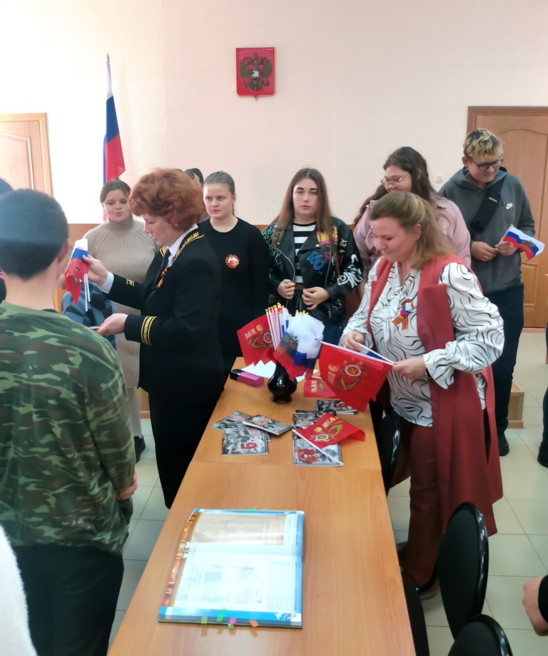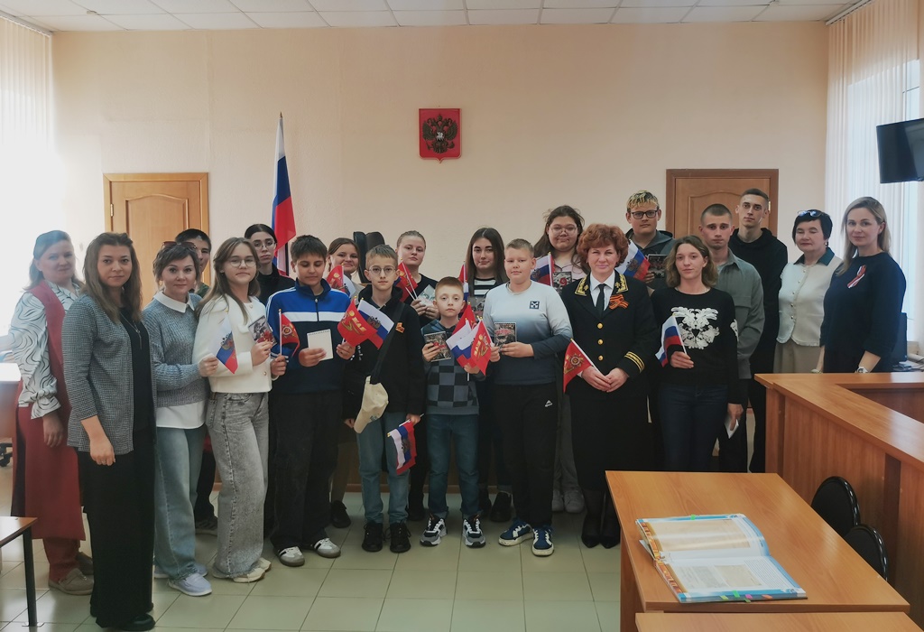 | 7 мая 2025 года в Малоархангельском районном суде Орловской области состоялось мероприятие, посвящённое 80-летию Победы в Великой Отечественной войне 1941-1945 годов, в котором приняли участие учащиеся школ Малоархангельского района Орловской области и студенты Малоархангельского филиала БУ ОО СПО «Глазуновский сельскохозяйственный техникум». Председатель районного суда Беликова И.А. провела экскурсию по зданию районного суда, рассказала о специфике работы суда, а также о работе судебной системы Орловской области в годы Великой Отечественной войны в 1941-1945 годы. Председатель районного суда поздравила участников мероприятия с наступающим Днём Великой Победы советского народа фашистской Германией, сказав, что подвиг советского народа бессмертен, молодое поколение должно хранить эту память и передавать следующим поколениям. По окончании встречи было сделано фото на память и гостям вручены флажки с изображением копии Знамени Победы и Российского флага, а также блокноты с символикой 80-летия Победы. Пресс-служба Малоархангельского районного суда ![]() ![]() |